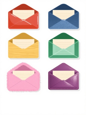 极简风格图标设计,六个不同配色、不同样式、不同材质的纸飞机造型,浅色背景,上下两行对齐排列,每个纸飞机保持简洁的几何线条,黑白对比鲜明,线条流畅,具有现代简约的设计感,纸飞机造型各异,材质分别呈现纸张、金属、木质、塑料、布料和玻璃质感,色彩丰富且协调,整体构图平衡对称,视觉层级清晰,信息传达高效。