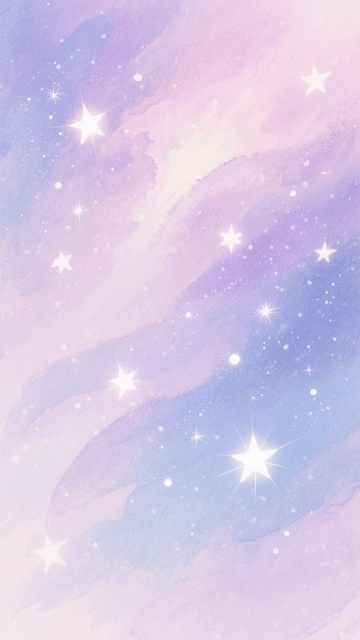 一片深邃神秘的夜空,无数闪烁的星光点缀其间,呈现出梦幻般的水彩画风格。星星的光芒带着柔和的光晕,色彩以温暖的粉紫色调为主,穿插着淡淡的蓝色和金色,营造出浪漫而宁静的氛围。夜空中漂浮着几缕轻盈的云彩,被星光映照出柔和的轮廓,整体画面充满了诗意的梦幻感,给人一种置身于童话般星空下的奇妙体验。