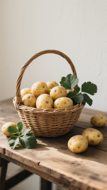 一张具有复古乡村风格的餐桌背景图,画面中心是一块粗糙质感的亚麻色粗麻布餐垫,边缘自然毛躁,随意铺陈在深色木质桌面上,木纹清晰可见。餐垫上散落着几颗红黑相间的胡椒粒和几片翠绿的罗勒叶,增添自然气息。背景中,左侧有一个装满棕色洋葱的浅木色编织篮子,旁边立着一个带有红色浆果花纹的陶瓷储物罐,罐身古朴。右侧是一个装满新鲜绿色生菜的深棕色藤编篮子,底部边缘点缀着一颗鲜红的小番茄、几瓣大蒜和几片罗勒叶,整体色调以棕褐色、原木色、绿色和红色为主,营造出温馨、质朴、充满生活气息的厨房氛围。光线柔和,从上方偏左位置洒落,在餐垫和食材上形成自然的光影过渡,阴影细腻,突出物体的立体感和材质纹理,构图采用近景聚焦餐垫,远景模糊处理背景元素,形成舒适的视觉层次,适合作为餐桌背景使用。