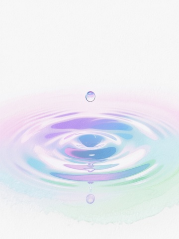极简主义风格的白色背景,中央是一圈圈向外扩散的彩色渐变水波纹,色彩从中心的深蓝色逐渐过渡到外围的粉紫色,水波的边缘呈现出柔和的光晕效果,整体画面给人一种宁静而梦幻的感觉。