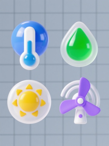 6个不同配色、不同样式、不同材质的卡通风格电风扇,采用简洁圆润的造型设计,低饱和度马卡龙色调,柔和均匀的平面光影效果,边缘有轻微的白色描边,表面带有细腻的颗粒纹理质感,整齐排列在纯白色背景上,每个风扇保持统一的卡通插画风格和视觉比例,整体构图平衡对称,呈现出清新可爱的视觉效果。