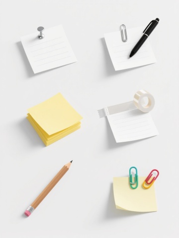 一套6个不同内容的教育主题矢量素材集合,每个素材均为规整排布的物品组合,保持统一的简约矢量风格和纯色背景。第一个素材:木质边框绿色黑板,右下角放置蓝色板擦和白色粉笔;第二个素材:棕色皮质笔记本,翻开的页面上放着一支银色钢笔和黄色便利贴;第三个素材:透明玻璃水杯,旁边是橙色铅笔盒,盒内露出红色铅笔和绿色橡皮;第四个素材:蓝色硬壳文件夹,上面压着银色回形针和白色便签纸;第五个素材:米色帆布书包,拉链部分打开,露出紫色笔记本和粉色文具盒;第六个素材:白色陶瓷笔筒,内插黑色马克笔、棕色蜡笔和绿色水彩笔。所有元素边缘平滑,色彩明快且区分度高,背景为不同纯色,整体布局对称平衡,适合教育相关设计使用。