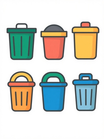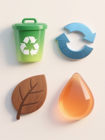 极简主义风格的系列环保素材集合,纯色背景,六个完全不同造型的循环回收标志元素规整排布,保持简洁的线条勾勒和几何形态特征,每个标志采用独特的色彩方案,整体色彩变换丰富,视觉层次清晰,设计感强,适合作为环保主题的系列宣传素材。