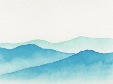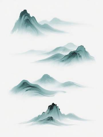 简约现代风格的山峦元素图案,纯净的纯色背景,山峦采用淡雅的蓝灰色调,呈现出水墨般的朦胧质感与柔和渐变,线条流畅舒缓,造型概括抽象,整体画面简洁空灵,意境悠远,山峦元素在画面中规整排布,构图平衡协调。
