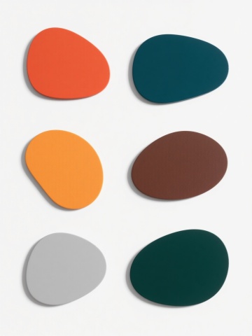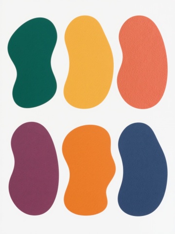6个不同配色、不同样式的有机抽象形状,每个形状边缘带有同色系细线条装饰,白色背景,所有形状排列整齐,保持简约现代的设计风格,平面插画效果,色彩鲜明,线条流畅。
