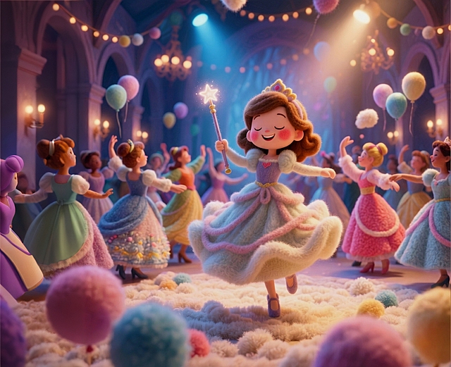 皮克斯风格,舞者身上闪闪发光,小天鹅服上贴着水晶镶钻,闪闪发光详情