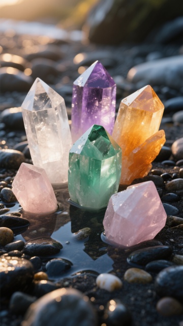 3D渲染风格的紫色与蓝色渐变水晶簇,具有锐利的多面体结构和清晰的内部纹理,表面呈现出高光泽度和细腻的反光效果,背景为梦幻的光斑散景,整体光影对比强烈,高光区域明亮耀眼,阴影部分深邃神秘,营造出科技感与未来感并存的氛围,构图采用中心聚焦式,突出水晶的立体感和透明质感,无任何文字和水印。