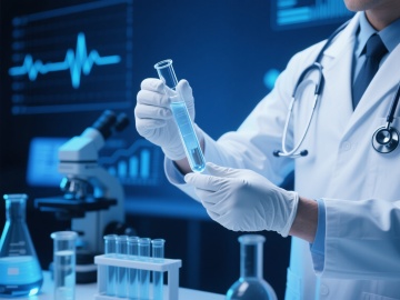 极简主义构图,全景视角下的未来生物实验室,纯净的白色与冰川蓝构成的无菌空间,墙面采用无缝纳米陶瓷板拼接,地面是反光率达95%的超白玻璃材质,顶部悬浮着呈几何阵列排列的环形LED光源,光线均匀地洒落在所有表面。左侧是模块化悬挂式试剂架,透明亚克力容器中装着梯度蓝色的生物试剂,下方嵌入式实验台配备隐藏式智能控制面板。中央区域放置着一台六边形结构的量子分析仪器,金属外壳呈现细腻的哑光钛白色。右侧墙面上的生物安全柜采用隐形门设计,与墙面融为一体。整个空间无任何视觉噪音,连空气都仿佛凝固在绝对静止中,只有试剂瓶上的分子结构标签在微光下隐约可见,完美平衡了科技冷感与空间美学,为内容展示提供极致洁净的背景画布。