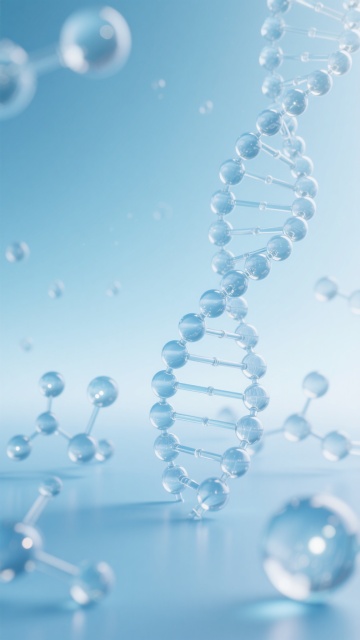 医疗科技感背景,高清写实风格,以蓝色和白色为主色调,柔和明亮的光线从上方照射,营造出洁净、专业、充满希望的氛围。画面中心可替换为不同形态的医疗场景元素,如:显微镜下的细胞结构、DNA双螺旋模型、手术器械特写、药剂师调配药物的手部动作、医学影像图(CT、MRI)的可视化呈现、疫苗研发实验室的精密仪器、医护人员身着防护服的背影、智能医疗设备的界面展示等。背景融入半透明的六边形几何图形、数据流线条、分子结构模型等科技元素,采用虚实结合的构图,前景元素清晰锐利,背景元素带有轻微的模糊和光晕效果,增强空间层次感和科技感,整体设计需保持信息传达的清晰高效,符合医疗行业严谨、创新、关怀的专业形象。