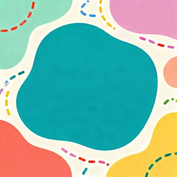 白色背景上排列整齐的6个不同配色、不同样式的形状,每个形状都具有简约的手绘风格,边缘带有同色系的细线条装饰,整体呈现出柔和的卡通质感,色彩明快且对比鲜明,形状样式包括不规则有机形、几何图形等多种类型,布局均衡有序,视觉层次清晰,具有现代简约的设计感。