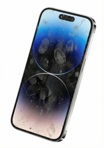 一张现代智能手机的产品展示渲染图,银色金属边框,正面全面屏设计,屏幕显示深邃渐变背景,上方为明亮的蓝紫色渐变圆形图案,下方为深棕色渐变圆形图案,整体呈现出简约、科技感与高级质感,光线柔和,阴影细腻,立体感强,纯白背景突出手机主体,无任何文字、logo、二维码及额外装饰元素。