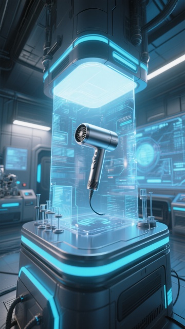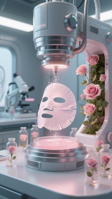 全景构图,极简风格的量子生物实验室内部,6米高的纳米自洁玻璃幕墙让晨光均匀漫射,360°环绕式无影灯带在悬浮式天花板上形成精密的几何光网。中央悬浮着由超导磁悬浮技术支撑的环形实验台,台面采用航空级白色陶瓷复合材料,边缘嵌入冷光蓝色状态指示灯。地面是无缝拼接的超白玻璃,倒映着天花板的光影矩阵与墙面模块化生物培养舱的蓝色数据流。左侧墙面上嵌入式智能试剂架自动分类排列着带荧光标识的纳米试管,右侧半透明亚克力隔断后可见带全息投影界面的基因测序仪,所有设备线条呈现精确的135°倒角处理。空气中悬浮着0.1微米级的净化气泡,整体色调由92%的超白与8%的科技蓝构成,营造出零重力感的绝对洁净科研空间。