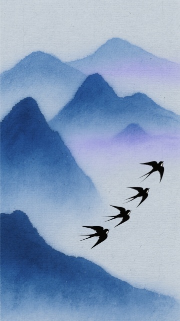 中国水墨画风格,以淡墨和青绿色为主色调,画面左上角有几片竹叶以写意笔触呈现,叶片边缘略带墨色晕染,右下角是朦胧的远山轮廓,山间点缀几棵浅墨色树木,三只飞鸟呈“人”字形排列于画面中下部,背景采用米黄色宣纸纹理,整体构图留白充足,营造出宁静悠远的东方意境,色调改为以赭石色和淡蓝色为主,背景替换为描绘梅花枝干与淡雅花朵的中国风样式,保持原有的水墨韵味和写意笔触。
