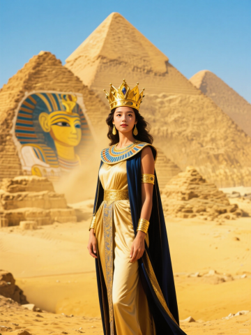 😎埃及金字塔前,AI 打造艳后古壁画风😍