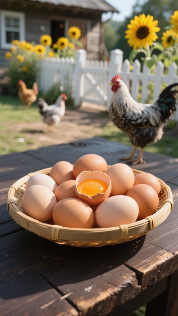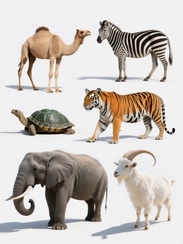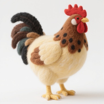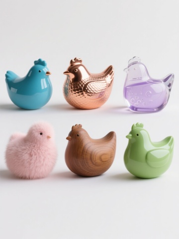 超写实风格的家禽主题系列素材集合,纯白纯色背景,保持与原图一致的高清晰度、细腻的羽毛纹理表现、自然的光影过渡和真实的色彩还原度。画面规整排布六个完全不同的鸡类目元素:1. 一只昂首挺胸的彩色公鸡,红色鸡冠,橙棕色身体羽毛,墨绿色尾羽;2. 一只正在低头啄食的黄色母鸡,羽毛蓬松,翅膀微收;3. 一窝排列整齐的浅棕色鸡蛋,带有细微斑点,部分蛋壳有反光;4. 一只毛茸茸的黄色小鸡,睁着圆溜溜的黑眼睛,站立姿态;5. 一只黑白相间的芦花鸡,侧身站立,羽毛呈斑纹状;6. 一个稻草编织的鸡窝,内部铺垫柔软干草,边缘略显粗糙质感。所有元素均保持真实动物的比例和形态特征,光线统一从左上方照射,形成自然的阴影和高光,整体画面干净整洁,信息传达清晰,适合作为家禽主题的系列设计素材。
