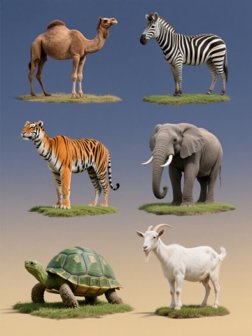 超写实风格的家禽系列素材集合,纯白背景,6个规整排布的独立元素,每个元素保持高度细节的摄影级质感和自然光影效果。从左到右、从上到下依次为:1. 站立的棕色母鸡,羽毛呈现暖黄色与深褐色渐变,尾部羽毛蓬松,头部有红色鸡冠和肉垂,眼神温和;2. 三个浅褐色带深棕色斑点的椭圆形鸡蛋,表面有细微的纹理和光泽,紧密排列;3. 一只黄色绒毛的小鸡,翅膀微张,抬头看向斜上方,脚爪细小呈橙黄色;4. 一只黑白相间的鸭子,身体肥胖,脖子弯曲,嘴巴扁平呈橙黄色,翅膀收拢紧贴身体;5. 一个编织的鸡窝,内部铺有干草,边缘有几根稻草散落;6. 一只灰色的鸽子,翅膀上有黑色条纹,尾巴展开呈扇形,站立姿态优雅。所有元素色彩真实自然,边缘清晰无阴影,整体构图平衡对称,每个元素大小一致,间距均匀。