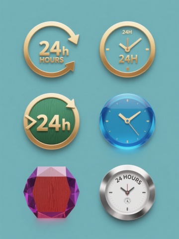 一套6张的3D风格系列素材集合,每张素材均为规整排布的单一闹钟图案,闹钟整体造型简约现代,采用纯色背景,无任何文字、logo和水印。第一张:红色渐变外壳的双铃闹钟,金色金属装饰,表盘中央有红色闪电图案,表盘为米黄色,金色刻度和指针,金色支架。第二张:蓝色渐变外壳的圆形闹钟,银色金属边框,表盘为白色,黑色数字和指针,顶部有一个银色提手。第三张:绿色磨砂质感的方形闹钟,黑色数字和指针,表盘为浅绿色,四个角有银色金属包边,底部有四个黑色防滑垫。第四张:黄色光滑外壳的卡通闹钟,造型像一个小房子,红色屋顶,白色表盘,黑色数字和指针,门口有一个小台阶。第五张:紫色透明外壳的球形闹钟,内部有蓝色LED灯,表盘为黑色,白色数字和指针,顶部有一个银色按钮。第六张:粉色软胶材质的椭圆形闹钟,表盘为浅粉色,金色数字和指针,顶部有两个粉色的小耳朵,底部有两个粉色的小脚丫。