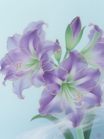 一张具有高级感的3D渲染花卉海报,画面主体是几片形态优雅、边缘微微卷曲的花瓣,花瓣呈现细腻的丝绸质感,表面有清晰的叶脉纹理。整体配色改为深邃的靛蓝色与亮紫色渐变,花瓣边缘点缀着鎏金光泽。背景是柔和的渐变紫色调,带有朦胧的光斑效果。画面中融入流畅飘逸的炫光线条元素,这些线条如星河般在花瓣周围环绕、穿梭,线条颜色为亮蓝色与粉色渐变,带有轻微的发光效果,与花瓣的金色边缘形成和谐对比。光线从画面上方偏左位置柔和洒下,花瓣上形成自然的高光与阴影过渡,增强立体感。整体氛围神秘而梦幻,充满未来感与艺术气息,视觉层次分明,主体突出,信息传达简洁有力。