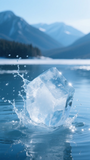 3D渲染风格,以纯净的冰蓝色和透明感白色为主色调,柔和的顶部光源创造出细腻的高光与渐变阴影,呈现光滑的流线型冰面质感,画面中融入连绵起伏的自然山水轮廓,以波浪状的冰雕形态展现山峦与水流的韵律,点缀大小不一、棱角分明的雪花晶体,部分雪花轻盈飘落,部分镶嵌于冰面纹理中,整体营造出清冷、纯净且富有诗意的冬日山水氛围,视觉层次清晰,主体突出,背景为渐变浅蓝天空,空间感开阔,传达出宁静致远的意境。