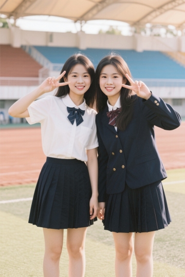 清新甜美校园风,两位少女活力四射,阳光下尽显青春动漫感。