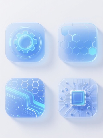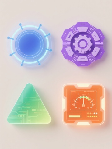 一组6个完全不同的AI科技元素系列素材集合,每个元素均采用高度精细的3D渲染风格,以纯色背景呈现。整体保持统一的视觉语言:金属质感的蓝紫色调机械结构,搭配明亮的蓝色核心光效和粉色霓虹线条点缀,光影过渡平滑自然,具有强烈的科技感与未来感。元素1:机器人手掌托举着带有原子轨道环绕的蓝色能量球体;元素2:半透明全息投影风格的"AI"字样,由流动的蓝色粒子和粉色光线构成;元素3:悬浮的机械齿轮组与数据流线条交织,中心有发光的蓝色核心;元素4:抽象的神经网络结构,由蓝色节点和粉色连接线组成复杂的立体网络;元素5:未来感十足的机器人头部侧视图,眼部发出蓝色光芒,头部有数据接口细节;元素6:科技感十足的控制面板,带有旋钮、指示灯和全息投影屏幕,屏幕上显示抽象数据图案。6个元素规整排布,形成视觉上协调统一的系列设计,每个元素细节丰富,具有相同的材质表现和光影效果。