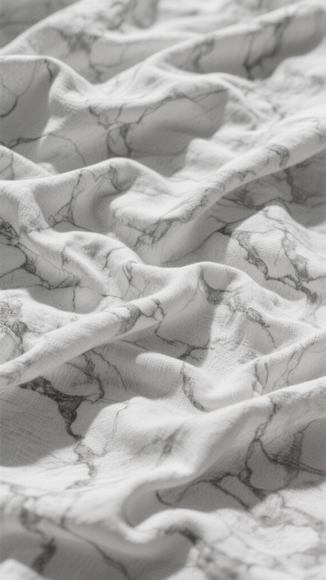 一张高清摄影风格的布料纹理特写,主体为柔和米白色的轻薄面料,呈现出自然流畅的波浪形褶皱,纹理细腻可见细微的编织纹路,整体质感轻盈飘逸。光线从斜上方柔和洒下,在布料表面形成明暗渐变的光影效果,高光区域明亮但不刺眼,阴影部分过渡自然,营造出宁静、优雅且高级的氛围。画面聚焦于布料的质感和褶皱形态,背景简洁纯净,突出布料本身的柔软与垂坠感。