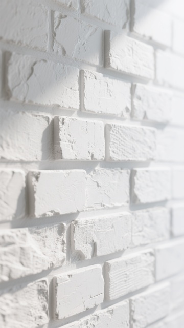 一面由不同纹路、材质和装饰细节构成的白色砖墙背景,砖块表面呈现自然的手工砌造质感,部分砖块边缘有细微的磨损和不规则线条,整体排列紧密且略带随机变化的接缝宽度,墙面整体呈现柔和的哑光白色调,光线从上方柔和洒下,在砖块之间形成浅淡的阴影层次,突出墙面的立体肌理感,适合作为展示不同装饰风格元素的中性背景墙。