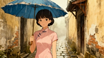 清新中式实景,少女白裙轻舞,阳光洒落古巷,尽显灵动之美。