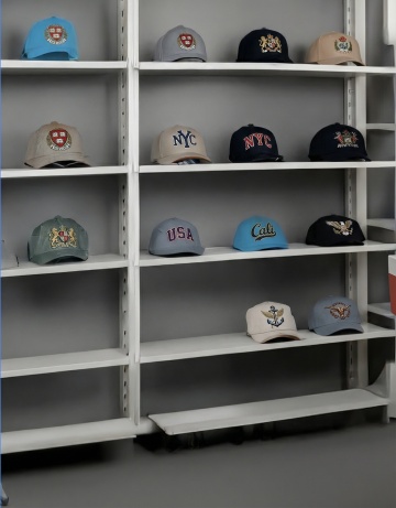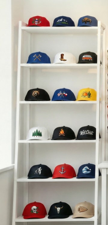 白色纯色背景,六个不同款式的帽子以2x3网格规整排布,每个帽子保持与原图一致的高清晰度产品摄影风格,统一使用柔和均匀的顶光照明,呈现细腻的布料纹理和自然阴影,包含以下完全不同的帽子元素:1. 米色渔夫帽配黑色皮质防风绳 2. 深蓝色棒球帽带白色刺绣logo 3. 灰色针织冷帽带毛球装饰 4. 棕色皮质鸭舌帽配金属搭扣 5. 军绿色迷彩棒球帽 6. 黑色贝雷帽配丝绸缎带,所有帽子保持相同尺寸比例和专业商品展示角度,整体画面简洁干净,突出产品细节和材质质感。