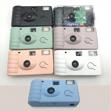 一个复古风格的米色拍立得相机,正面有黑色圆形镜头、闪光灯和测距窗,左侧有橙色圆形快门按钮,右侧有黑色圆形调节旋钮,机身正面中间位置有一条由红、黄、蓝、绿色组成的垂直彩色条纹,相机底部正在吐出一张白色空白相纸,整体采用简约的3D渲染效果,平滑的塑料材质质感,柔和均匀的光影,高光和阴影过渡自然,纯白色背景,居中构图,清晰的轮廓和细节,呈现出怀旧而现代的设计感。