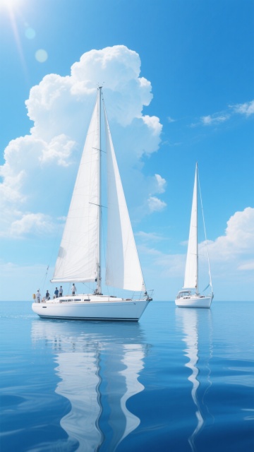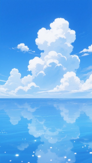 动漫风格插画,宁静致远的蓝色海洋,广阔无垠的海面泛着层层柔和的波浪,远处一艘白色帆船扬起风帆航行,背景是朦胧的远山轮廓,上方是渐变的清澈蓝天,整体色调以深浅不一的蓝色为主,光影柔和,营造出悠闲惬意的氛围,画面构图开阔,视觉焦点集中在海面上的帆船,展现出大海的浩瀚与自由。