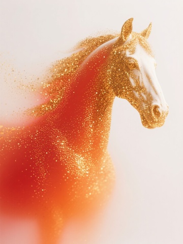 金色主色调背景,具有细腻的磨砂纹理与柔和的渐变光泽,右下角点缀闪烁的金色颗粒质感,整体呈现温暖而华丽的金属光泽感,融入中国风元素与万马奔腾的壮阔场景,马匹姿态昂扬、鬃毛飞扬,以流畅的线条勾勒出动态奔腾之势,背景可适当加入祥云纹、回纹等传统中国风装饰图案,保持整体金色调的和谐统一,营造出既具现代质感又不失古典韵味的磅礴氛围。