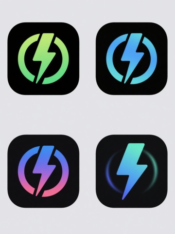 一套6张的系列按钮素材集合,纯白色背景,每张素材均为规整排布的单一造型图案,3D立体风格,光滑的塑料质感,带有渐变色彩和高光反射效果,图案为不同展现形式的闪电造型,颜色可多样化,包括但不限于蓝色、紫色、绿色、黄色、橙色、红色等,闪电的形状可有所变化,如不同的角度、分支数量或粗细,保持整体的统一性和系列感,图形居中放置,边缘清晰,无模糊效果,适合作为UI界面的按钮图标使用。