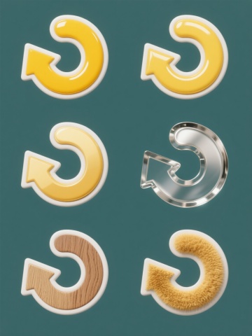 简约现代风格系列素材,每张均为规整排布的单一元素图案,纯色背景,无文字无logo无水印,核心元素为不同设计样式和颜色的旋转箭头,箭头线条流畅,造型简洁,保持整体风格统一。
