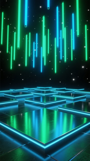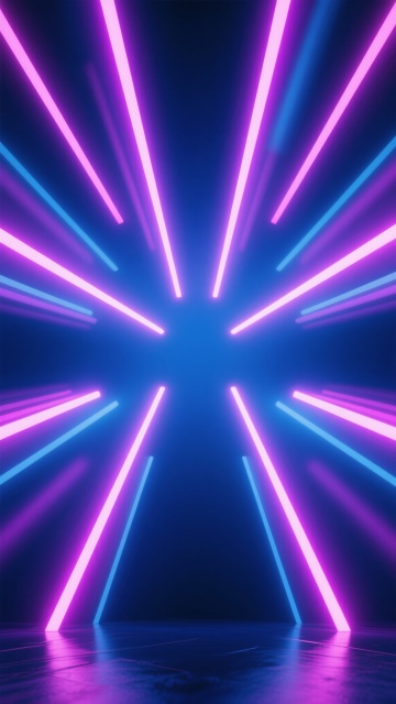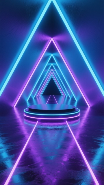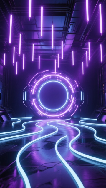 未来感赛博朋克风,霓虹灯与几何线条交织,科技球悬浮中央,营造炫目视觉盛宴。