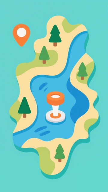 2.5D等距风格插画,白色背景,绿色草坪上一条蜿蜒的浅色小路,路的两侧有三排长椅,一位穿着黄色上衣和蓝色裤子的人正沿着小路行走,周围有几棵大树和灌木丛,点缀着红色的小花,整体画面色彩明亮,风格简洁,没有水印。