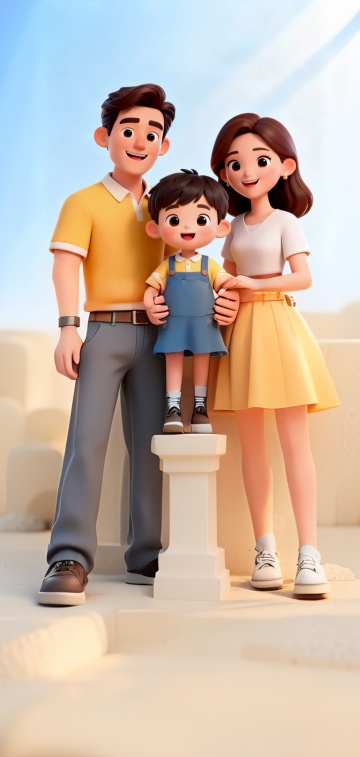 一家人一起做沙盘
