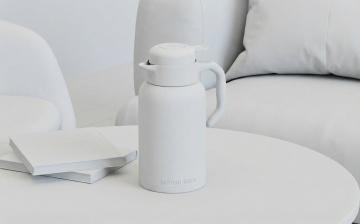 六个不同样式、不同风格、不同配色的保温杯,排列整齐,白色背景,3D产品渲染,高清晰度,光滑金属质感,柔和光线,正面视角,简洁构图,无品牌标识,物体阴影清晰,反光细节丰富,简约现代设计感,产品展示效果