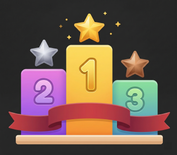 三个垂直排列的六边形徽章,从上到下分别为金色、银色和铜色,每个徽章中央都有一个白色的数字(1、2、3),徽章两侧各有一对翅膀,翅膀上装饰有小星星,整体采用扁平化设计风格,色彩明亮饱和,金色徽章具有温暖的金属光泽和细微的磨砂质感,银色徽章呈现出冷冽的金属反光和光滑的电镀表面效果,铜色徽章则带有复古的金属纹理和柔和的哑光光泽,背景为纯白色,所有徽章边缘线条清晰,无渐变效果,保持简洁的图标式设计语言。