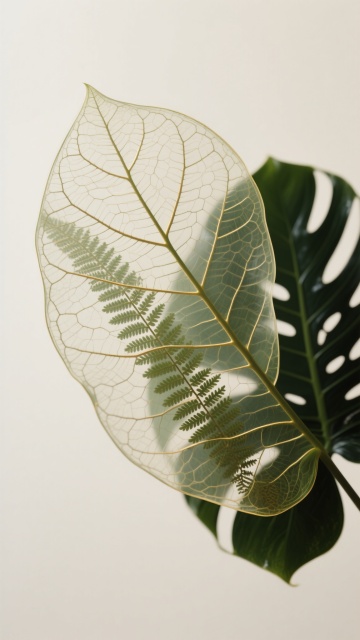 一张具有极简主义风格的植物纹理海报,画面主体为几片半透明的枯叶脉络特写,叶脉纹理清晰可见,呈现出自然的网状结构,叶子边缘微微卷曲,整体构图采用三分法,将叶子的局部细节置于画面中央偏下位置,形成视觉焦点。画面整体配色改变为以深褐色、赭石色和米白色为主,深褐色作为叶脉的主要颜色,线条纤细而坚韧,赭石色填充于叶脉之间的薄膜部分,透出温暖而复古的质感,米白色作为背景色,纯净而柔和,衬托出叶子纹理的细腻。光影运用柔和,采用来自左上方的漫射光源,光线强度适中,在叶子的边缘处形成淡淡的高光,阴影细节微妙,增强了叶子的立体感和透明感。整体氛围宁静而富有自然气息,给人一种质朴、怀旧且略带禅意的情感共鸣。