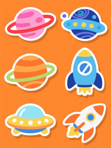 六个不同配色、不同样式、不同材质的宇宙元素,包括带有彩色光环的行星、闪烁的星星、彗星、陨石、星系和宇航员头盔,采用数字插画风格,色彩鲜明柔和,渐变自然,带有细腻的噪点纹理和光感效果,白色背景,元素大小均匀,呈两行三列整齐排列,构图简洁平衡,每个元素具有独特的视觉特征和材质表现,整体画面清新明快,充满宇宙的神秘感和梦幻色彩。