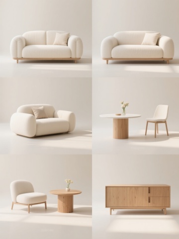 6个不同配色、不同样式、不同材质的展台素材,以浅色为统一背景,上下两行对齐排列。每个展台都具有柔和的3D渲染效果,整体呈现出极简主义的设计风格,主色调以浅色系为主,搭配各自独特的色彩点缀。光影运用柔和,光源来自顶部偏前方,光线强度适中,在展台底部形成淡淡的阴影,增强立体感。展台的材质质感丰富多样,包括光滑的哑光漆面、带有细微纹理的磨砂质感、半透明的水晶般材质、温润的木质纹理、金属拉丝效果以及柔软的布艺包裹感等。每个展台的样式设计各异,有的是简洁的几何立方体,有的是带有弧形边缘的圆润造型,有的是多层阶梯式结构,有的是单侧悬挑设计,有的是中空框架式,还有的是结合了曲线与直线的有机形态。展台之间保持适当间距,整体构图均衡,视觉层级清晰,营造出清新、现代且富有设计感的展示氛围,能够在短时间内清晰展示各展台的独特设计特点,符合对创意展示道具的视觉呈现需求。