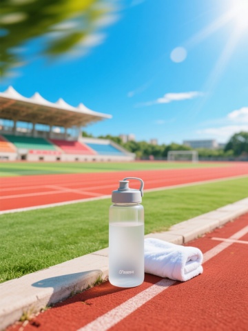一张充满活力的运动场景照片,展现一位男性运动员在不同运动场景中的动态瞬间。画面采用低角度仰拍,捕捉人物充满力量感的肢体动作和运动姿态。温暖的夕阳从侧后方照射,在人物轮廓边缘形成明亮的金色光晕,同时在地面上投射出长长的影子。天空呈现出清澈的渐变蓝色,点缀着几朵轻盈的白云。人物穿着运动背心和短裤,脚上是专业的运动鞋,肌肉线条在运动中紧绷而富有爆发力。地面根据不同运动场景变化,可能是湿润的柏油跑道、红色的塑胶田径场、绿色的草地或山间小径,表面反射着阳光的光泽。背景可以是城市天际线、郊外的树林或山间的风景,营造出开阔而充满能量的氛围。整体色调以金色、橙色和蓝色为主,高对比度,清晰的细节,展现运动的速度感和力量美,捕捉运动中最具动感和张力的瞬间。