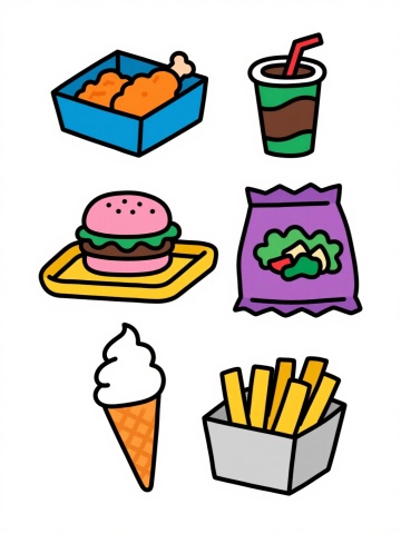 一组色彩变换的卡通风格蔬菜元素集合,保持原有的圆润线条、鲜艳平涂色彩、黑色描边和简洁造型风格,包含不同种类的蔬菜(如胡萝卜、番茄、黄瓜、西兰花、土豆、黄甜椒、生菜等),所有蔬菜元素规整排布在纯色背景上,整体画面色彩明快活泼,构图均衡,适合作为素材使用。