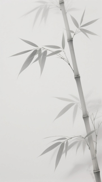 清新淡雅的水彩风格插画,以大面积纯净的白色作为背景,营造出极简留白的意境。画面左上角有几片嫩绿的竹叶轻盈垂落,叶片边缘略带模糊的虚化效果,仿佛微风拂过,飘逸灵动。散落的竹叶从左上角向右下方自然延伸,姿态舒展,色彩从清新的嫩绿色渐变为淡淡的草绿色,层次柔和。整体画面充满了宁静、自然的清新感,构图简洁大方,留白恰到好处,给人一种空灵通透、心旷神怡的视觉体验。