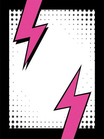 漫画风格边框,白色背景,边缘装饰有不规则的深粉色几何尖角图形,每个尖角内部填充纯粉色并带有黑色轮廓线,背景均匀分布细密的黑色小圆点图案,整体呈现出复古波普艺术的视觉效果,构图保持对称与平衡,色彩对比鲜明,线条利落清晰。