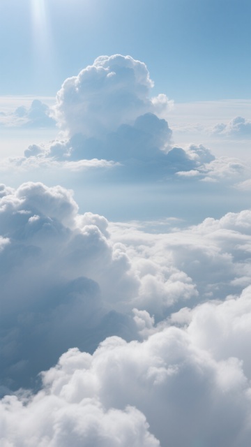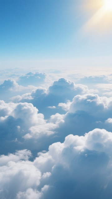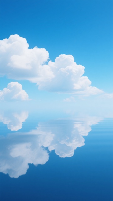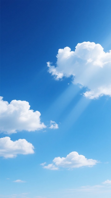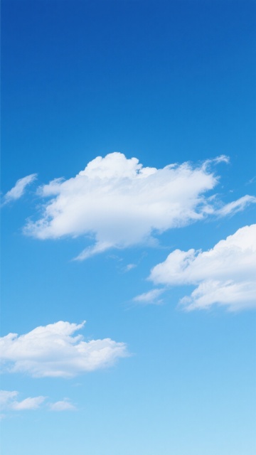 高饱和度渐变蓝天背景,从顶部深邃的钴蓝色平滑过渡到中部明亮的天蓝色,再到接近底部的淡青色和纯净的白色渐变,画面中漂浮着形态变换的蓬松白云,云朵边缘柔和虚化,内部呈现多层次的白色和浅灰蓝色阴影,具有轻盈、通透的质感,整体营造出宁静、开阔、晴朗的自然氛围,无任何文字或标识元素。