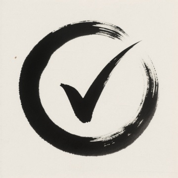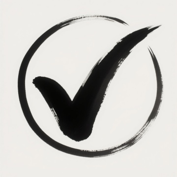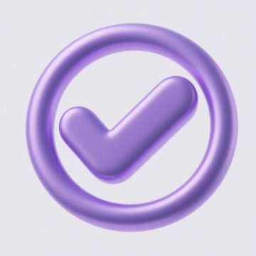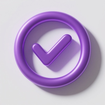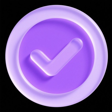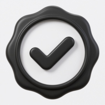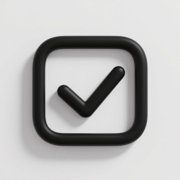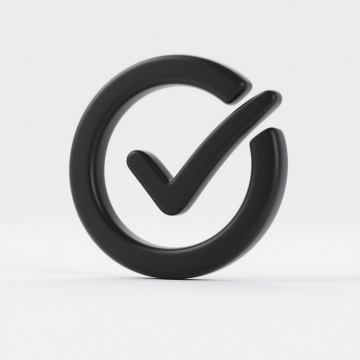 一个软3D风格的黑色对勾图标,对勾位于一个黑色圆形内,整体设计简洁、圆润,具有柔和的立体感,线条流畅,无任何多余装饰元素,背景为纯白色,营造出清晰、明快、专业的视觉氛围。