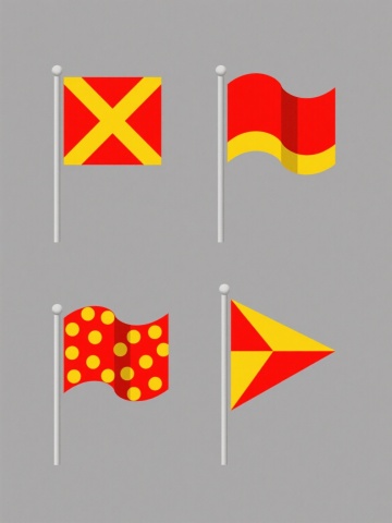 6个不同配色、不同造型的旗帜素材集合,每个旗帜均为3D立体风格,具有光滑渐变的旗面质感、圆润的白色旗杆、自然的波浪形飘动姿态,整体采用简约卡通设计,光影柔和,高光与阴影过渡自然,纯色背景,所有旗帜元素规整排布,保持统一的视觉风格与设计语言。