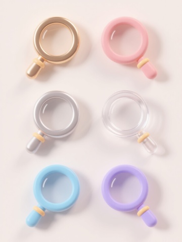 六个具有不同配色、样式和材质的发光圆圈素材,以两行三列的形式整齐排列在浅色背景上。第一个圆圈是金色渐变发光圆环,带有闪烁光点和光晕效果;第二个圆圈是蓝色透明玻璃质感,边缘有霓虹光效;第三个圆圈是红色磨砂金属材质,表面有细微纹理和中心高光;第四个圆圈是绿色半透明果冻质感,内部有气泡细节和柔和反光;第五个圆圈是紫色哑光塑料材质,带有同心圆纹路;第六个圆圈是粉色渐变亚克力质感,边缘有彩虹色折射光效。所有圆圈保持统一大小,间距均匀,整体呈现出科技感和现代设计美学,每个圆圈都具有独特的光影效果和材质特征,背景为柔和的浅灰色,突出圆圈的视觉效果。